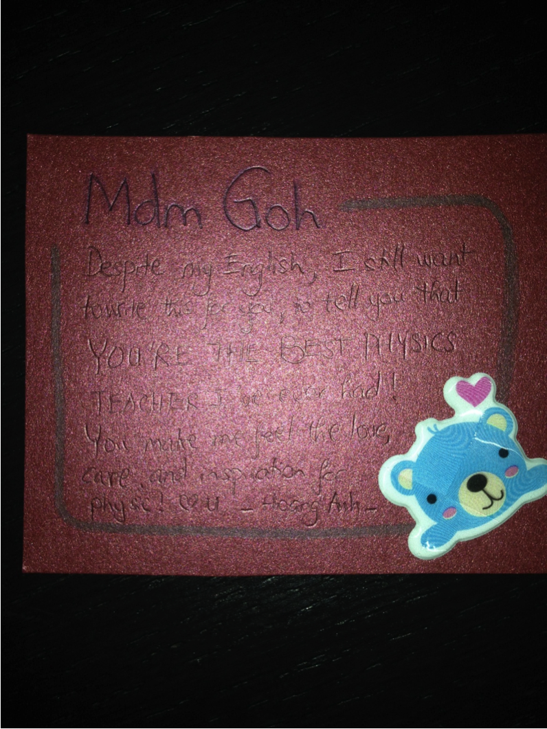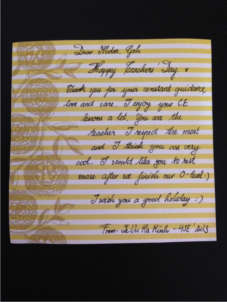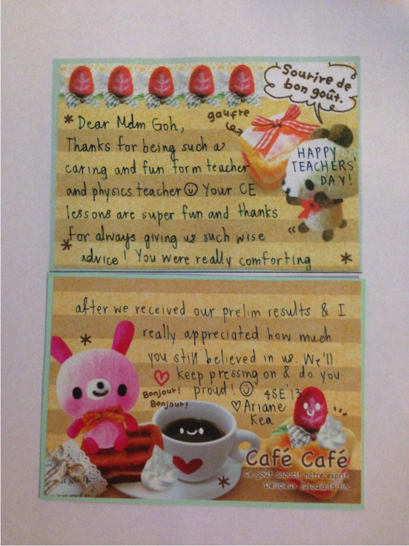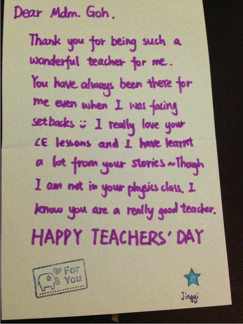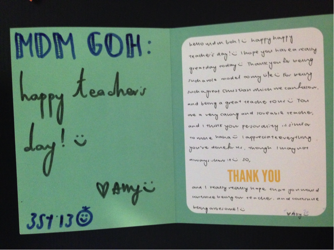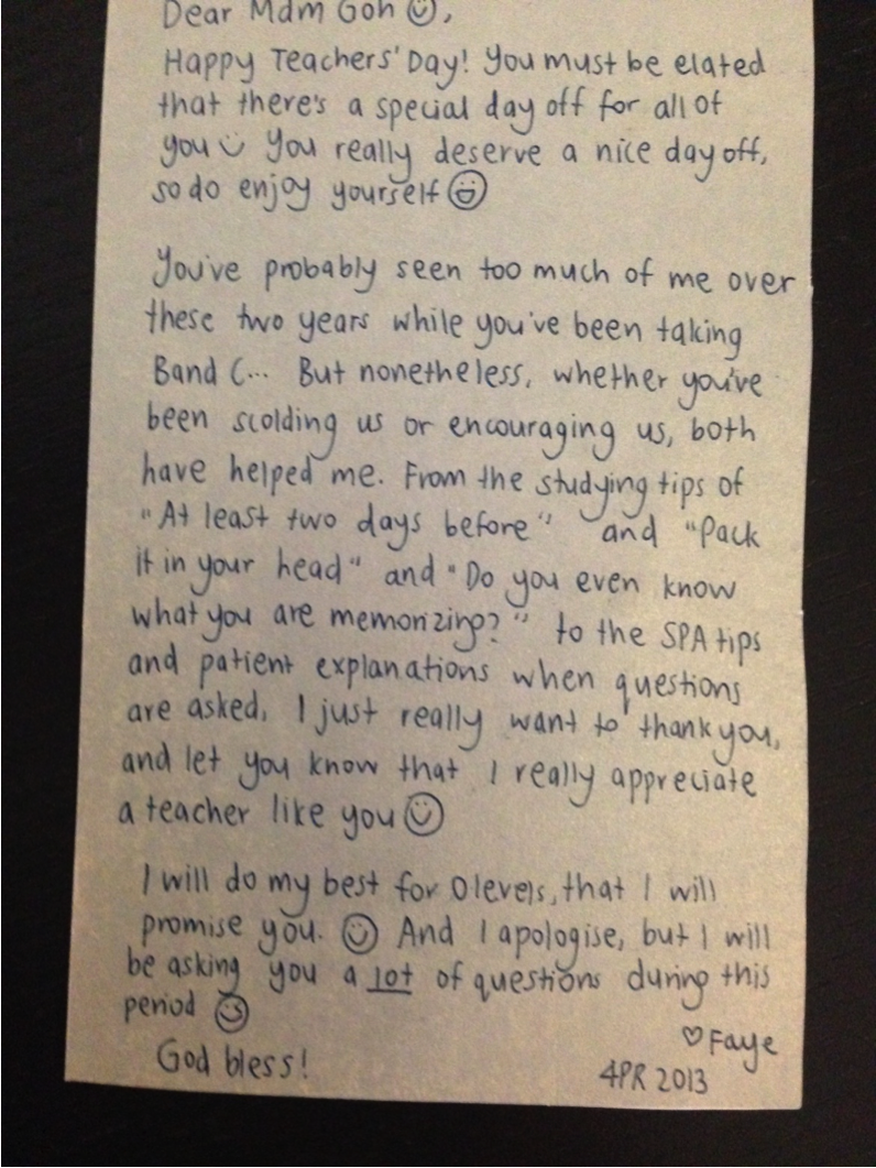 It has always been a joy for me to step in class and learn from the students as I try to impact and create their love and motivation for life and studies. As these students express their thankfulness, and there are many that are not publicized in this website, I would like to express my thankfulness to them for enriching my life. May their journey in life after secondary school days be continuously filled with zest and spontaneous laughter as they continue to soar and find their place in the society.